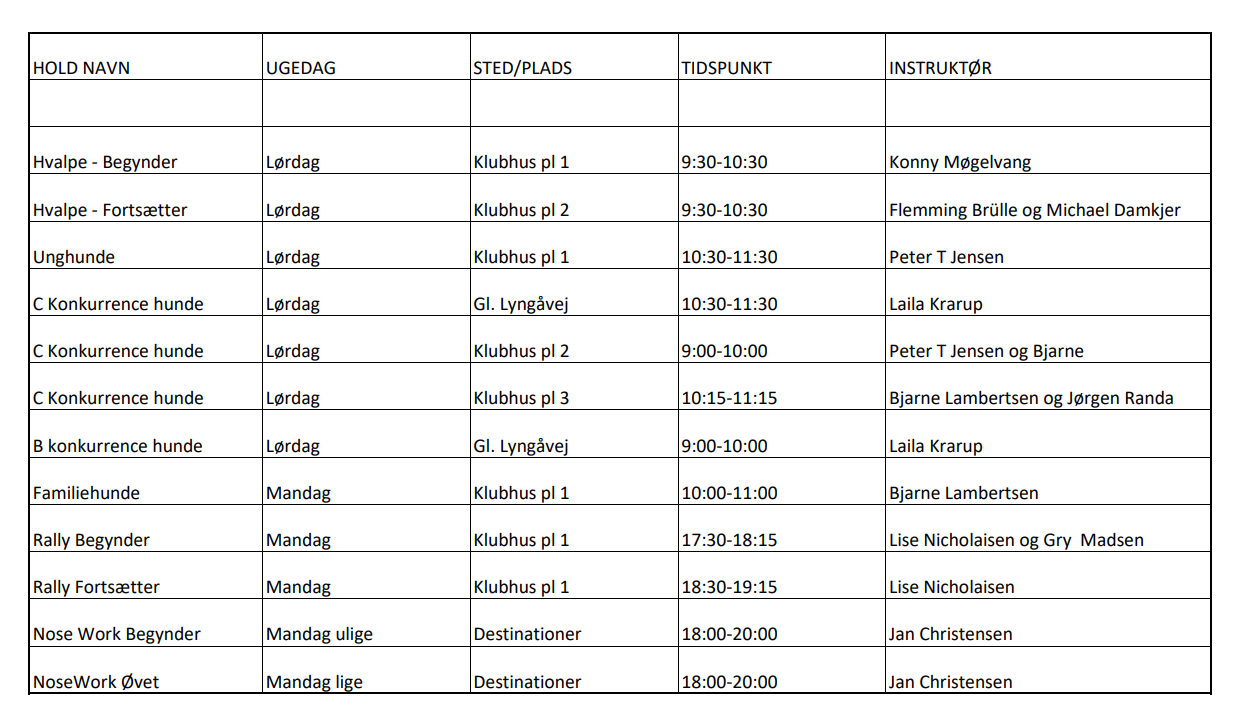 Træningstider
